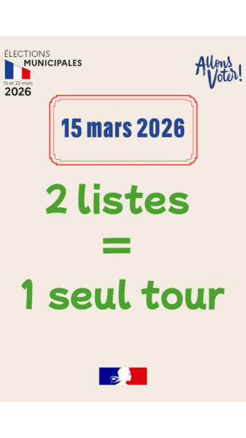 Seules 2 listes seront proposées au choix des électeurs de la commune pour les élections municipales. Ainsi, il n’y aura qu’un seul et unique tour qui se déroulera le dimanche 15 mars 2026.