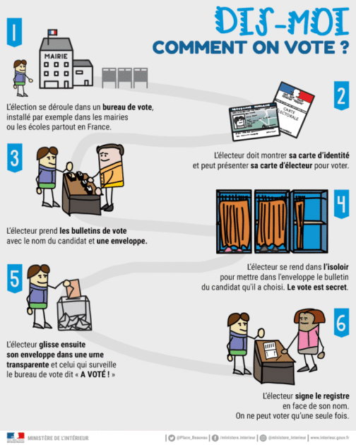 Une fois votre choix fait, présentez-vous devant le-la Président-e du bureau de vote muni de votre enveloppe et de vos justificatifs.
