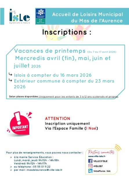 Inscriptions ALSH avril et mercredis de mai à juillet 2026
