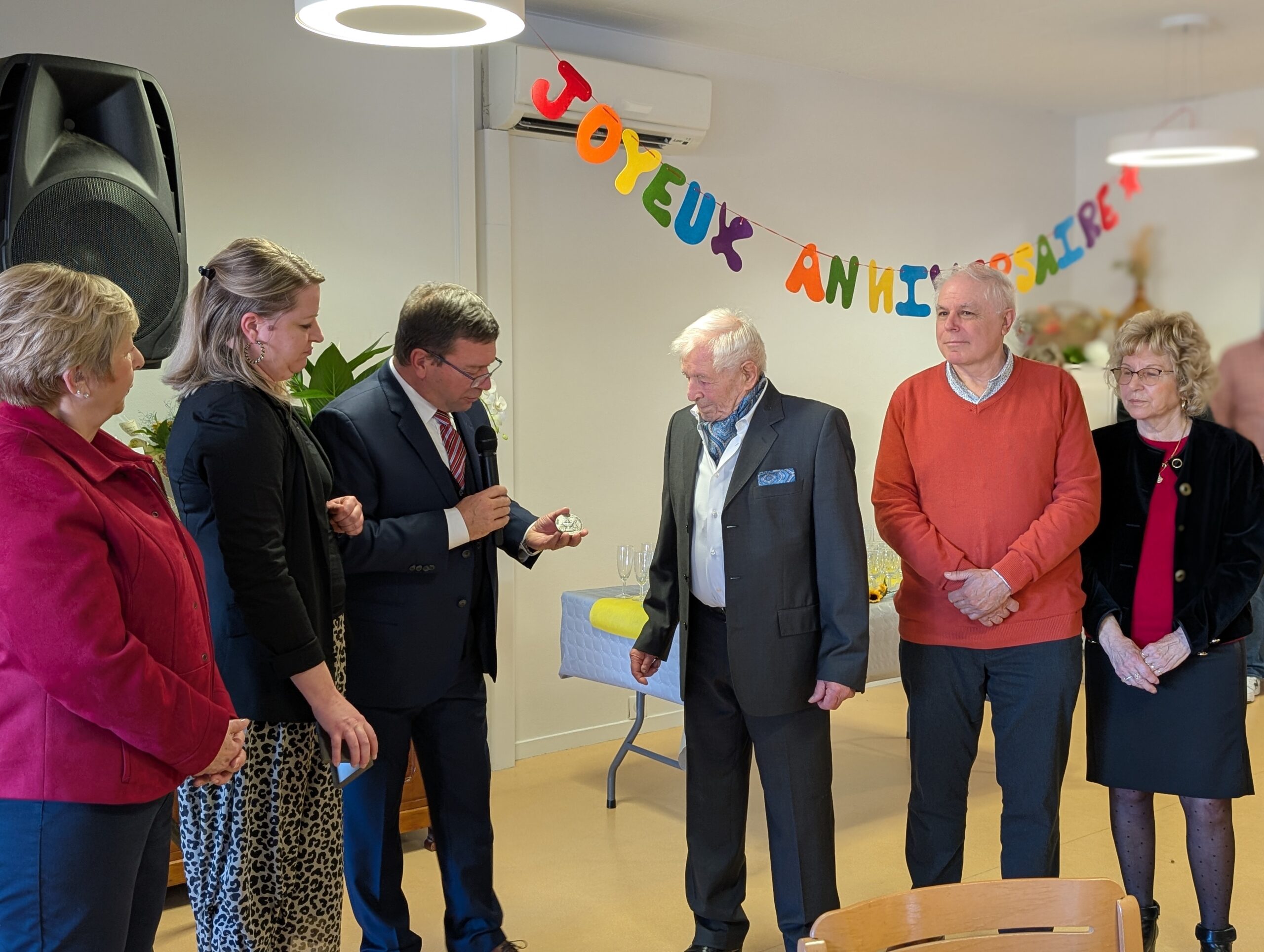 Basile Prokopiw, vient de célébrer ses cent ans en famille avec ses enfants, ses petits-enfants, ses arrière-petites-filles ainsi qu’avec ses amis proches français et ukrainiens, avant de les fêter le 4 février au sein de la Résidence Fleurie à Isle où il vit actuellement. Pour l’occasion, Monsieur le Maire Gilles BEGOUT, était présent aux côtés des résidents pour une belle fête au cours de laquelle il a remis la médaille d’argent de la ville à Basile.