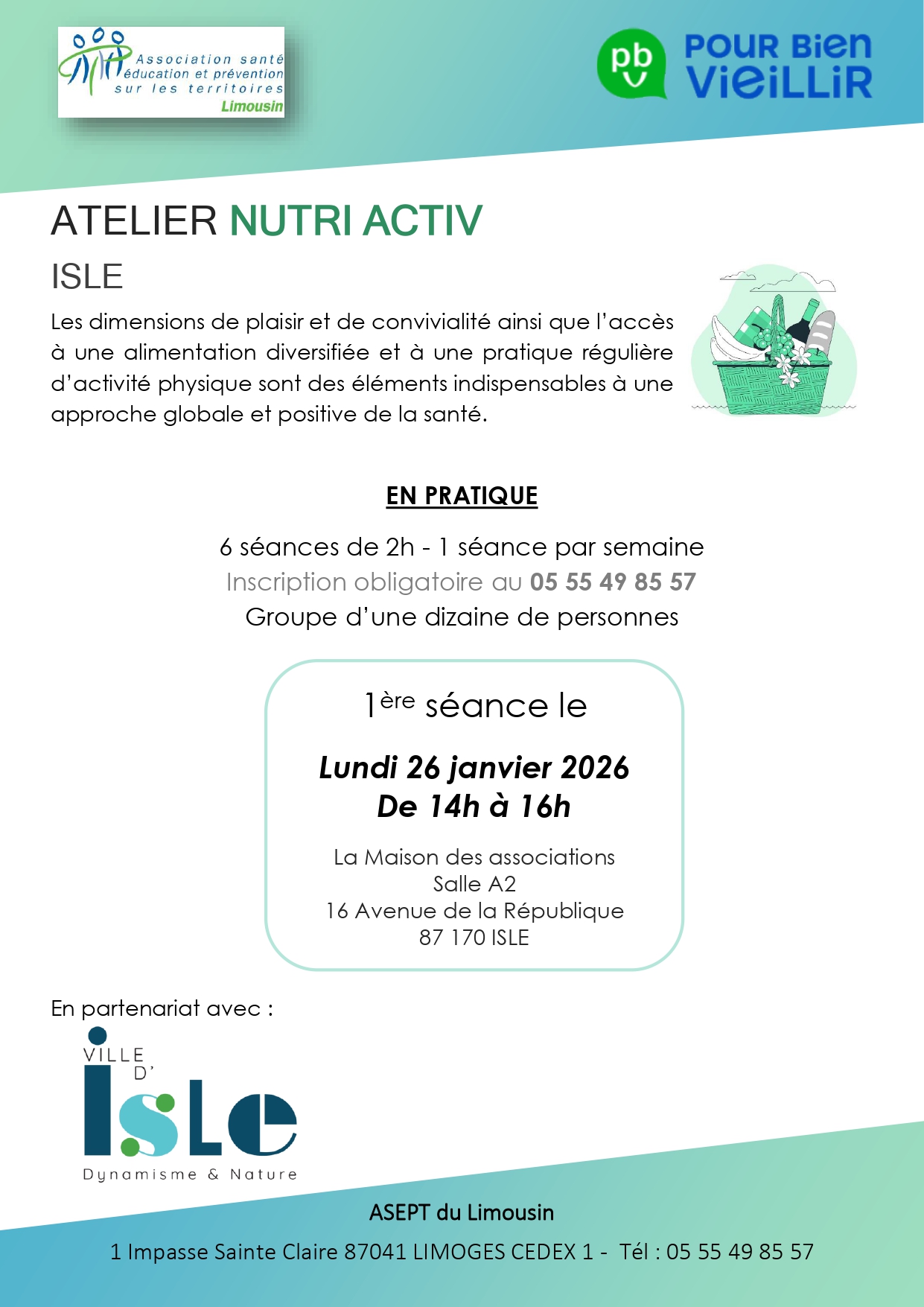 Inscription obligatoire : Contactez l’ASEPT au 05 55 49 85 57.