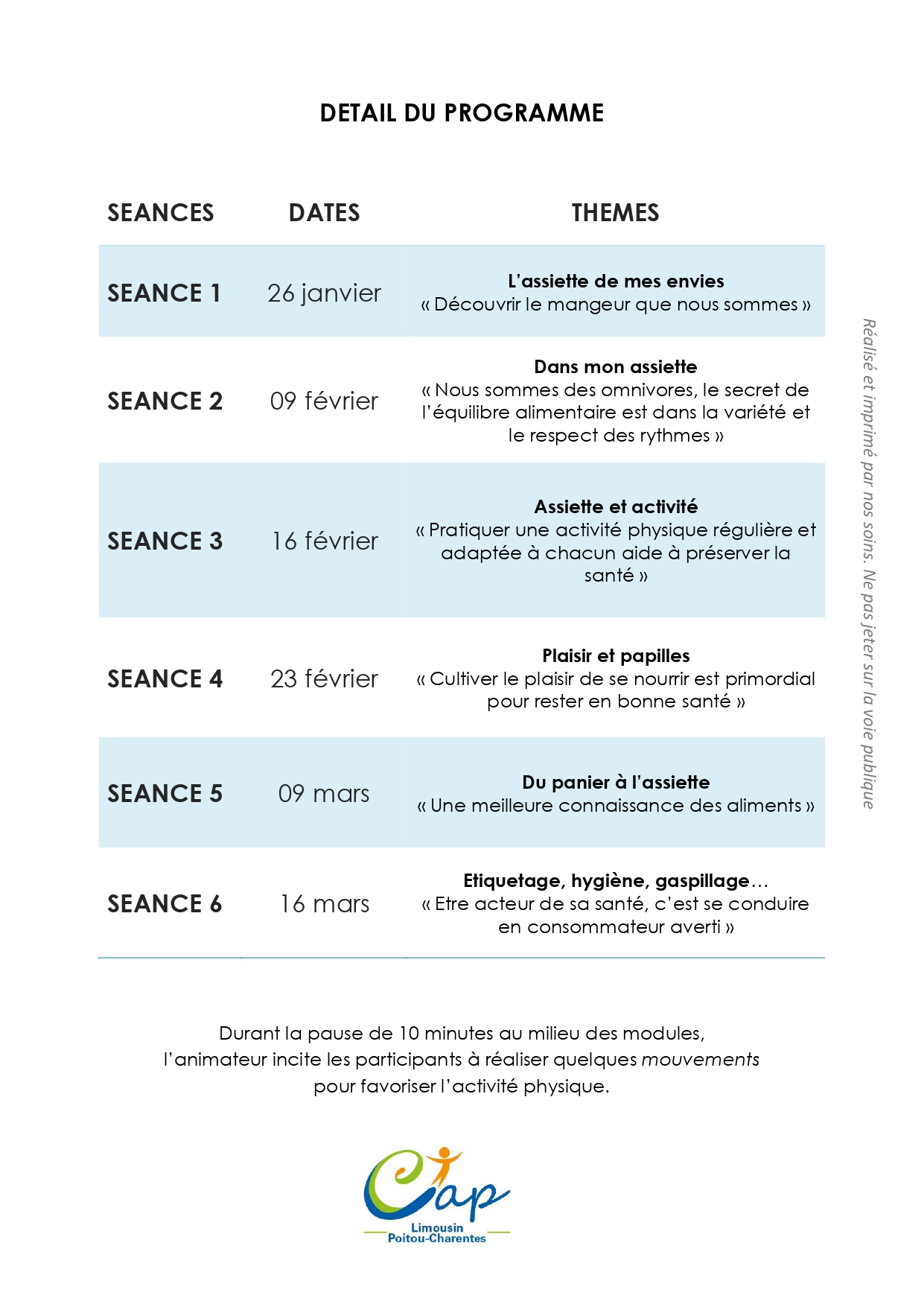 2. Atelier Nutri Activ : à partir du 26 janvier, redécouvrez le plaisir d’une alimentation diversifiée associée à une activité physique régulière. Cet atelier aborde des thèmes comme le gaspillage, l’étiquetage et le secret de la variété alimentaire.