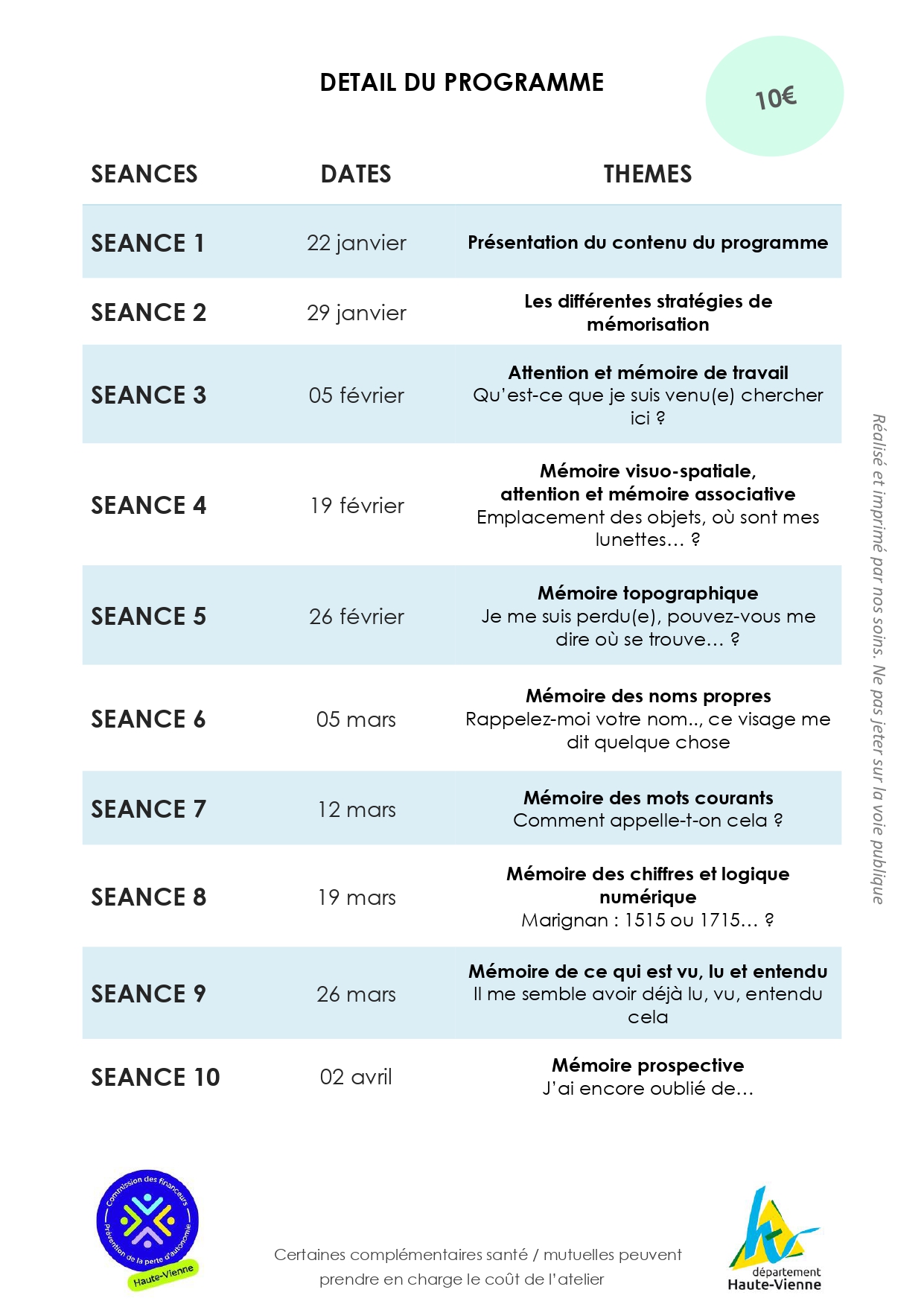 • Participation : 10 € pour l’ensemble du cycle.