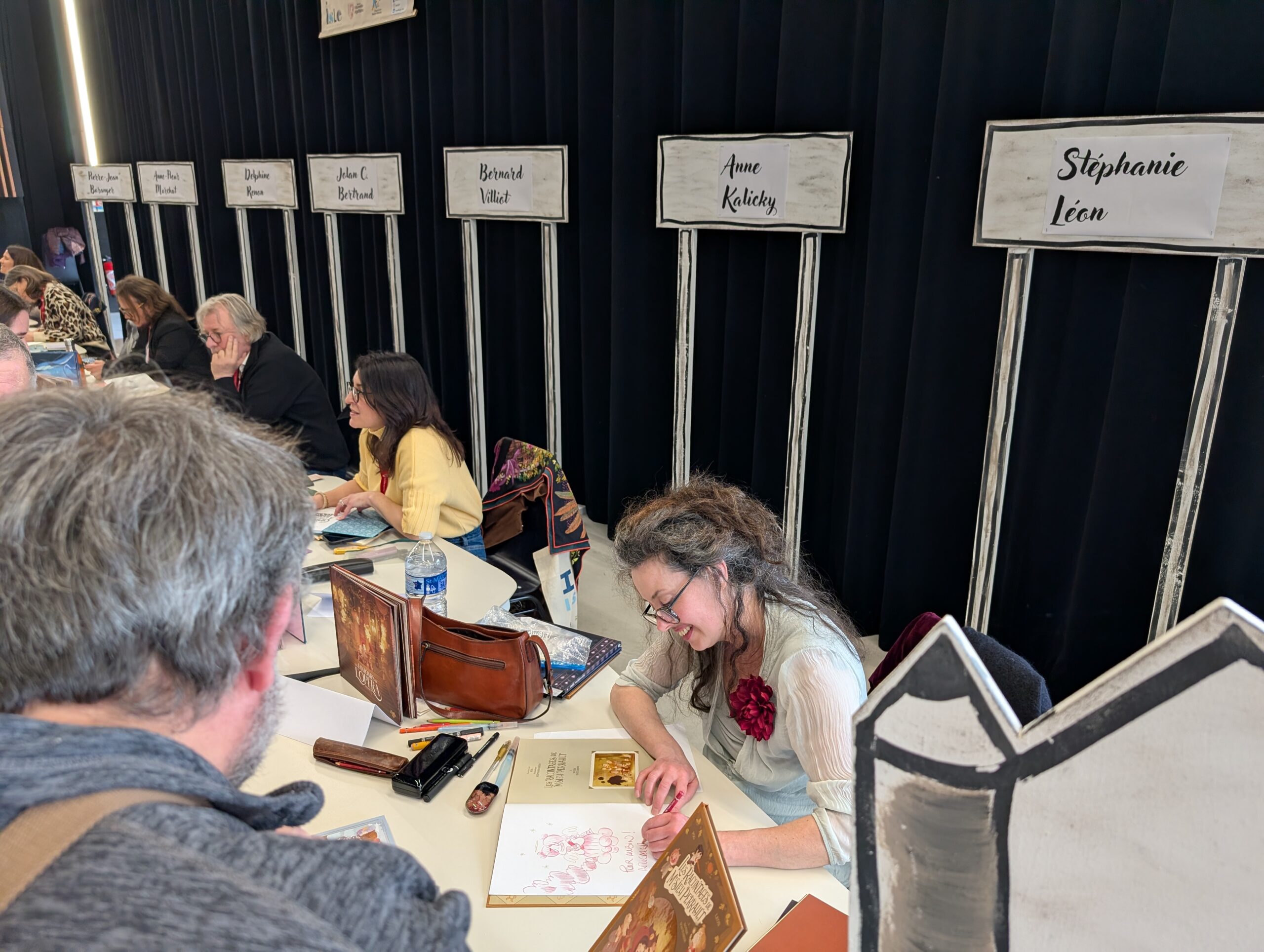 Deux auteurs locaux (Pierre-Jean BARANGER et Anne-Fleur MARCHAT) et 5 auteurs – illustrateurs nationaux (Anne KALICKY, Delphine RENON, Stéphanie LEON, Bernard VILLIOT, Jolan C.BERTRAND) étaient présents les samedi et dimanche en dédicaces.