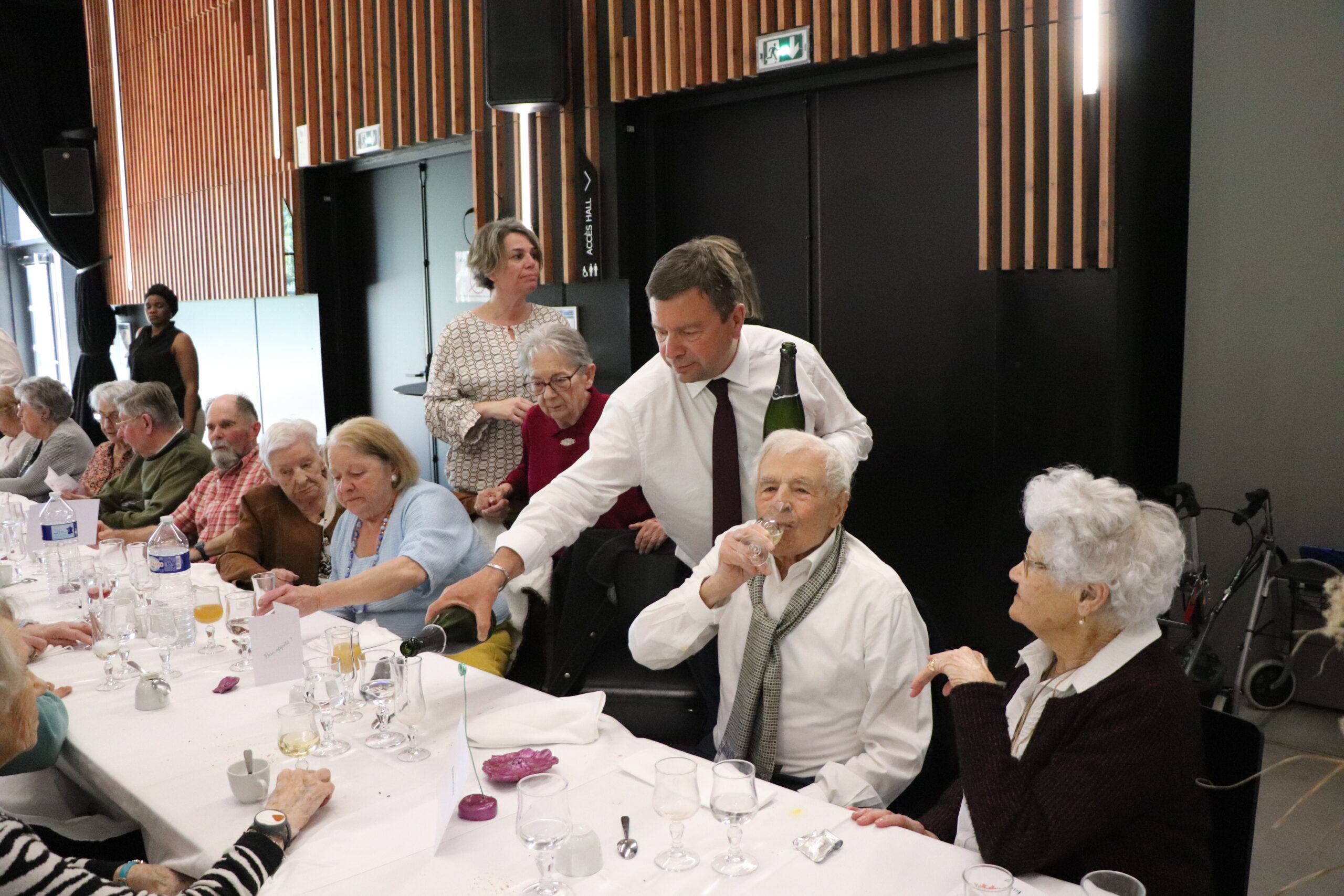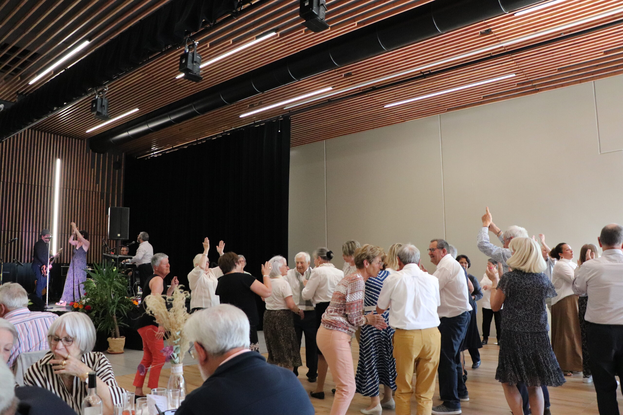 Dans une salle élégamment décorée avec l’aide de l’accueil de loisirs, les invités ont pu savourer un menu raffiné, élaboré pour satisfaire tous les palais. Entre deux plats, l’ambiance est montée d’un cran : rires, anecdotes partagées et musique ont permis à chacun de profiter pleinement de la fête. La convivialité était telle que la piste de danse n’a pas désempli de l’après-midi.